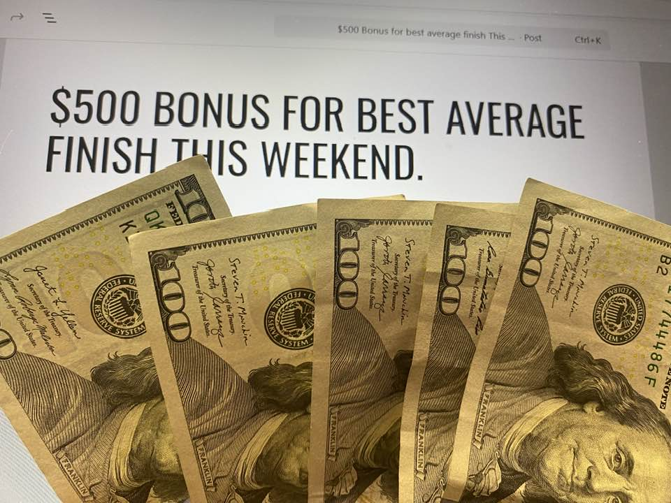 $500 Bonus for best average finish This Weekend.